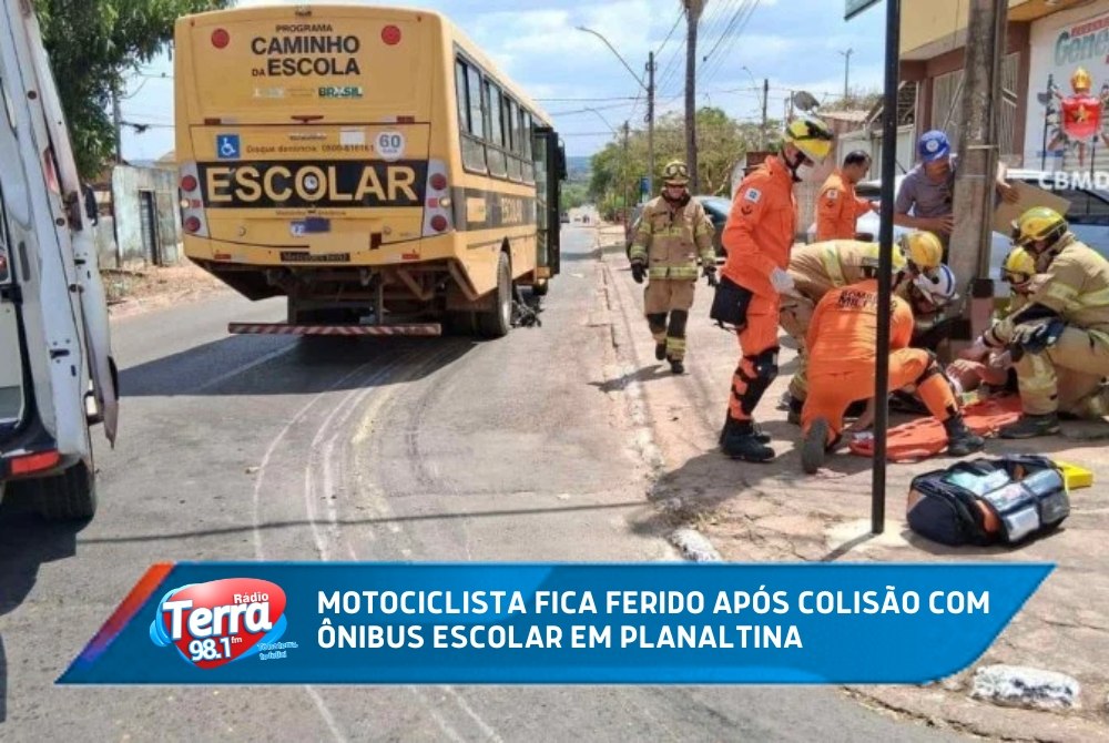 Um motociclista de 29 anos ficou ferido após colidir com um ônibus escolar no início da tarde desta terça-feira (16/9), no Setor Tradicional de Planaltina. O Corpo de Bombeiros (CBMDF) foi acionado e mobilizou três viaturas de socorro para atender a ocorrência. No local, os militares encontraram a motocicleta Honda CG 150, de cor preta, embaixo do ônibus escolar, conduzido por um homem de 49 anos. O veículo não transportava passageiros no momento do acidente e o motorista não se feriu. O motociclista teve uma fratura exposta no pé esquerdo, mas estava consciente e orientado, sem outros traumas aparentes. Ele recebeu os primeiros atendimentos no local e foi encaminhado para o Hospital Regional de Planaltina (HRPL). A via foi parcialmente interditada para garantir a segurança durante o socorro. Após o atendimento, o local ficou aos cuidados da Polícia Militar (PMDF). Ainda não se sabe as causas do acidente.