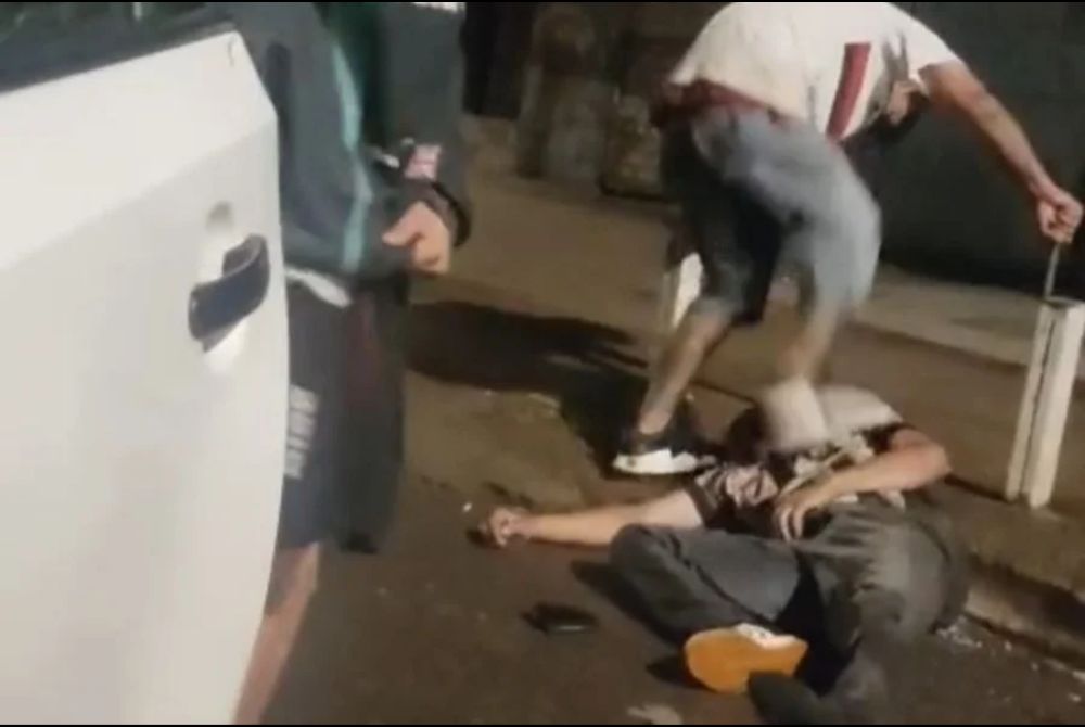 n video gravado por um motorista de aplicativo que deixava um passageiro naquela região, é possível ver os dois agressores pisando violentamente na vítima que aparece caída no chão desacordada.