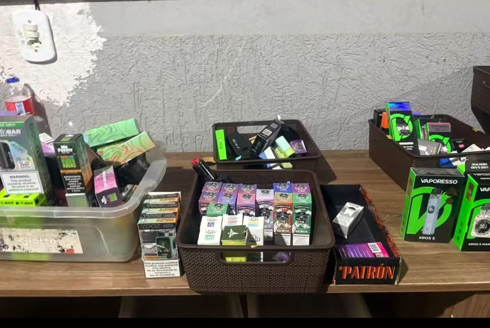 No momento da abordagem, agentes flagraram um jovem de 16 anos saindo da loja, logo após comprar um cigarro por R$ 1,50.Dentro do comércio, foram apreendidos cerca de 200 itens, entre vapes, pods descartáveis, essências com nicotina e acessórios. Dois celulares e cadernos com anotações do comércio também foram recolhidos.O proprietário, de 31 anos, e o vendedor, de 19, foram autuados por contrabando ou descaminho e por vender produto que causa dependência física ou psíquica a menor de idade, crime previsto no Estatuto da Criança e do Adolescente.Na presença de umaa advogada, eles optaram por ficar em silêncio e disseram que vão se manifestar apenas em juízo.De acordo com a polícia, as penas podem passar de quatro anos de prisão. Por isso, não foi arbitrada fiança na delegacia. Os dois foram levados para a carceragem.